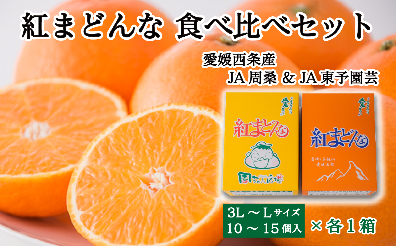 とろけるような食感 高級柑橘「紅まどんな」を食べ比べセットでお届け 紅まどんな 食べ比べ 10~15個入×2箱セット 愛媛県西条市 (JA周桑・JA東予園芸)【先行予約・11月下旬~12月下旬頃発送】| まどんな 愛媛 紅まどんな マドンナ みかん 果物 フルーツ ジューシー 甘い 高級 みかん おすすめ 人気 お取り寄せ 愛媛県 西条市 送料無料