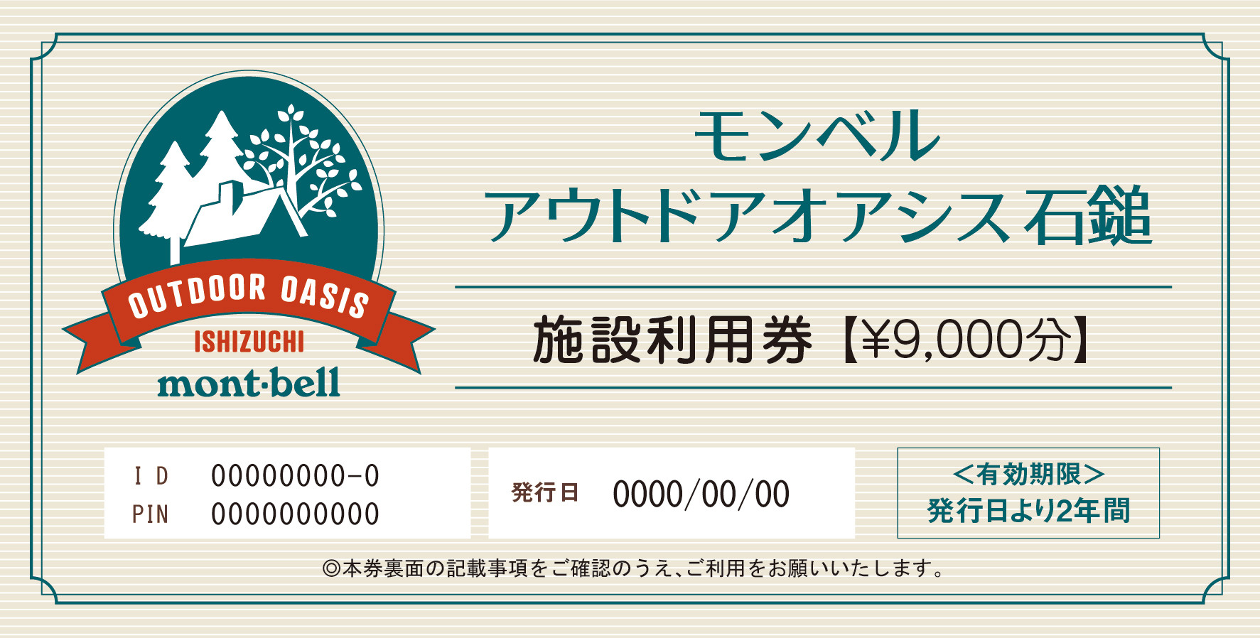 | 容量 | モンベルアウトドアオアシス石鎚「施設利用券」 9,000円分(500円券×6枚、1,000円券×6枚) |