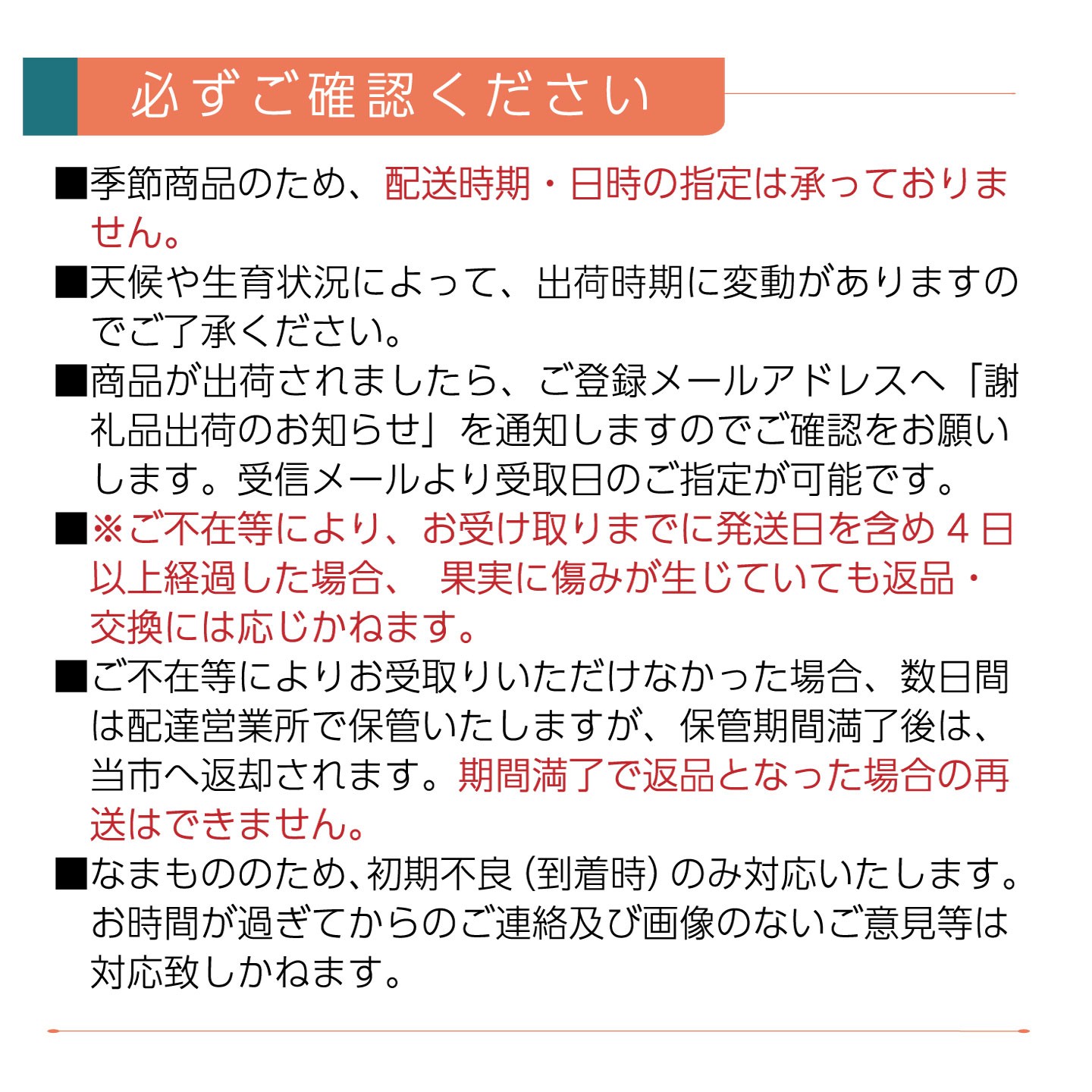 ※異常気象や自然災害等の影響により生育不良が発生し、商品をお届けできない場合は、事前にご連絡のうえ、代替品を発送させていただくことがございます。