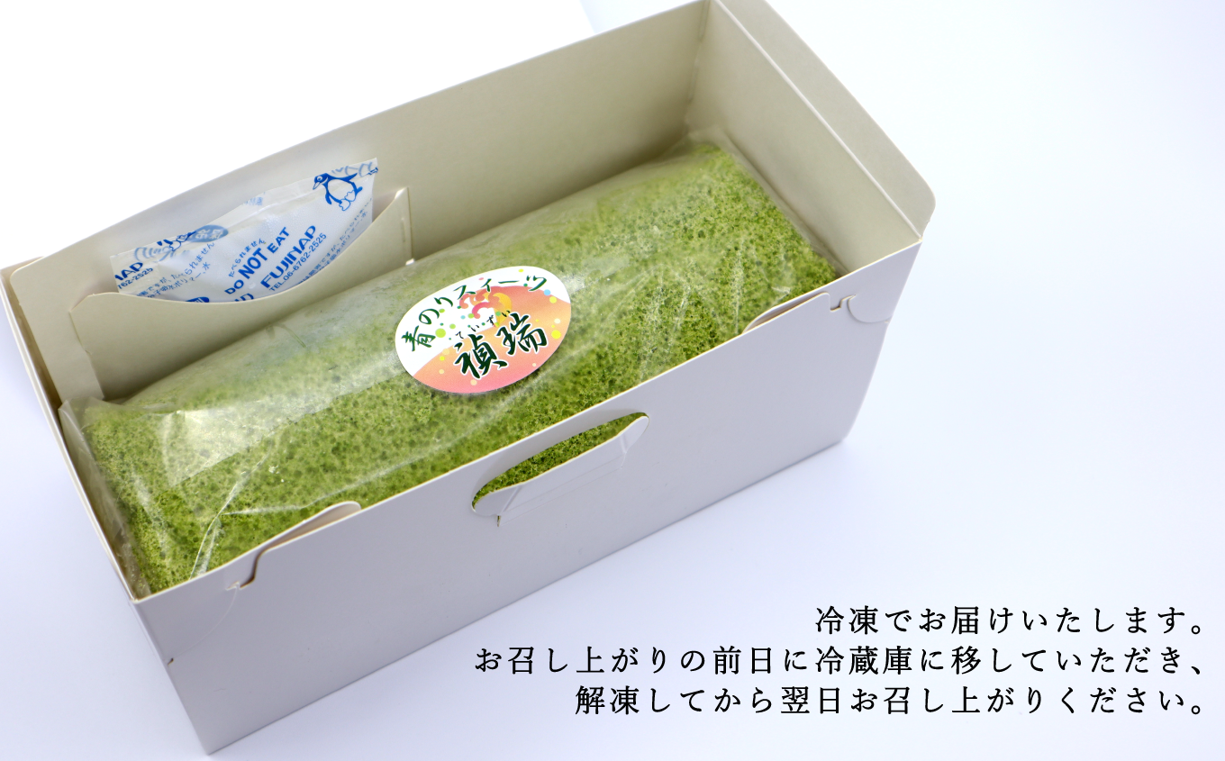 愛媛県西条産の最高級青のりを贅沢に使ったロールケーキです。