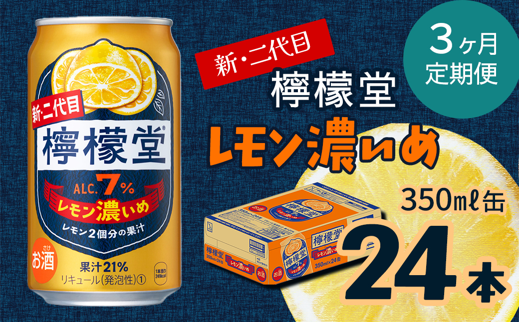 | 容量 | 檸檬堂 レモン濃いめ 350ml缶(24本入り)×1ケース ×3ヶ月 |