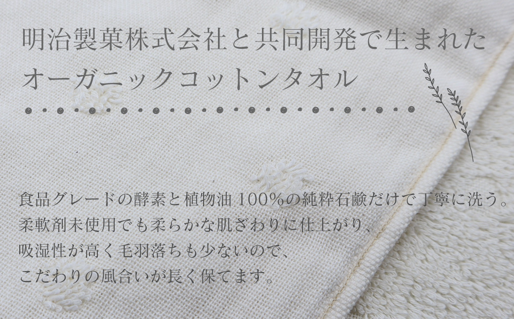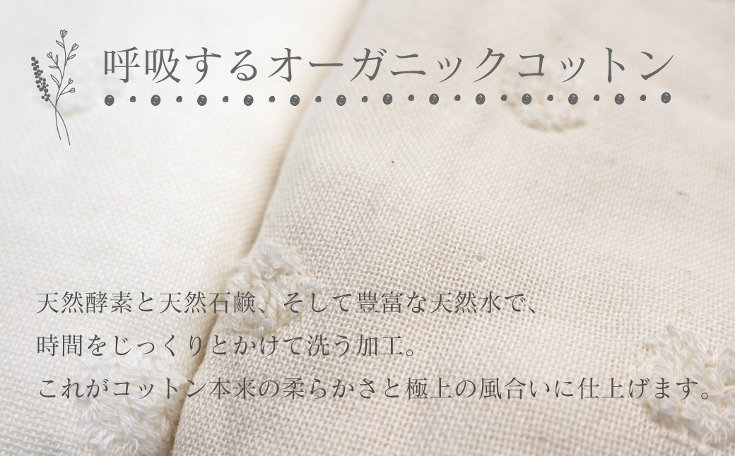 さらに、食品グレードの酵素を加えることで、抜群の吸水性と通気性、肌触りを兼ね備えた極上の風合いに仕上げることができました。