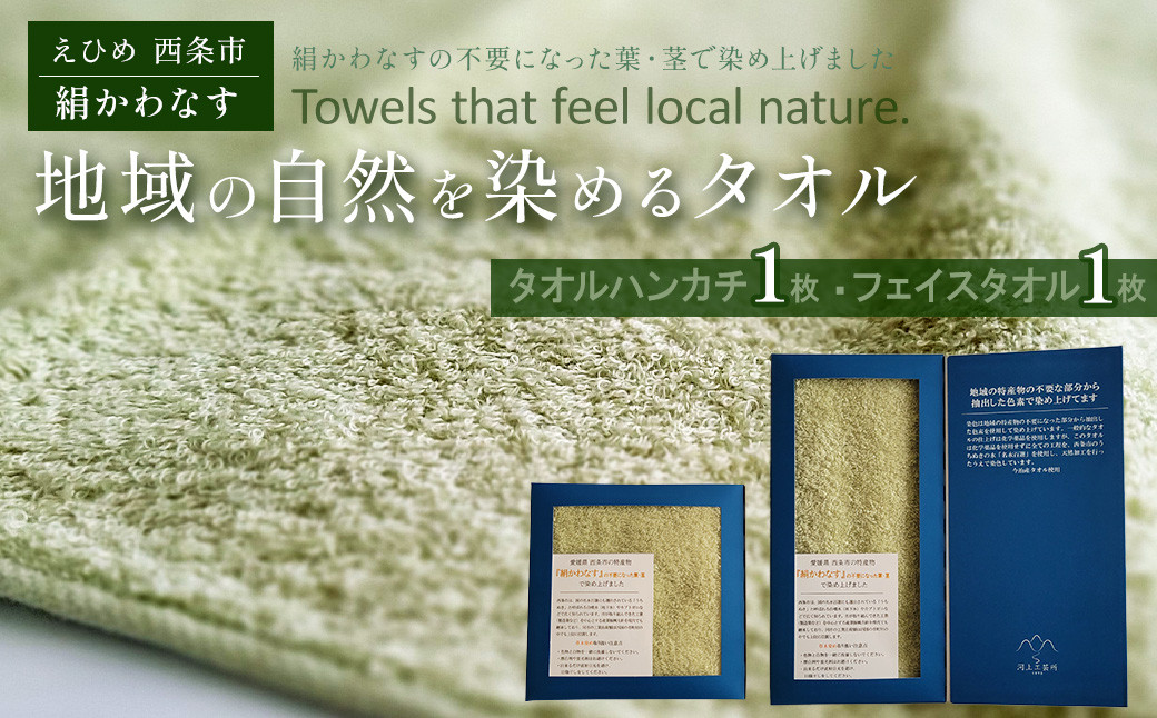 タオル 「地域の自然を染めるタオル」 フェイスタオル・タオルハンカチ 各1枚セット(うす緑/絹かわなす) 天然加工 草木染 西条市 河上工芸所