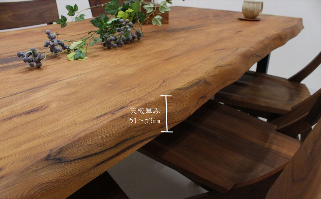 職人により作り上げられた一枚板のテーブルは、全て一点もの。