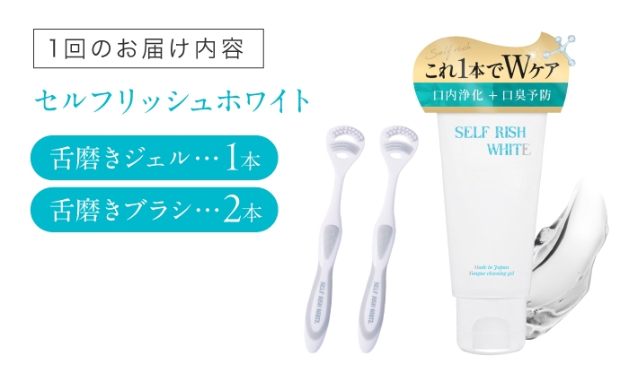 日用品 歯磨き粉 歯ブラシ 舌磨き ホワイトニング 歯周病 ジェル 口臭ケア 【全6回定期便】 セルフリッシュホワイト 舌磨きジェル ミントフレーバー風味 1本(100g) & 舌磨きブラシ 2本 愛媛県大洲市/Gross Mountain合同会社 歯磨き粉 歯ブラシ 舌磨き ホワイトニング 歯周病 ジェル 口臭予防 オーラルケア [AGCQ058]