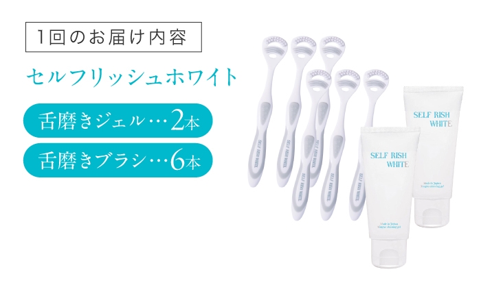 日用品 歯磨き粉 歯ブラシ 舌磨き ホワイトニング 歯周病 ジェル 口臭ケア 【全3回定期便】 セルフリッシュホワイト 舌磨きジェル ミントフレーバー風味 2本(100g) & 舌磨きブラシ 6本 愛媛県大洲市/Gross Mountain合同会社 歯磨き粉 歯ブラシ 舌磨き ホワイトニング 歯周病 ジェル 口臭予防 オーラルケア [AGCQ063]