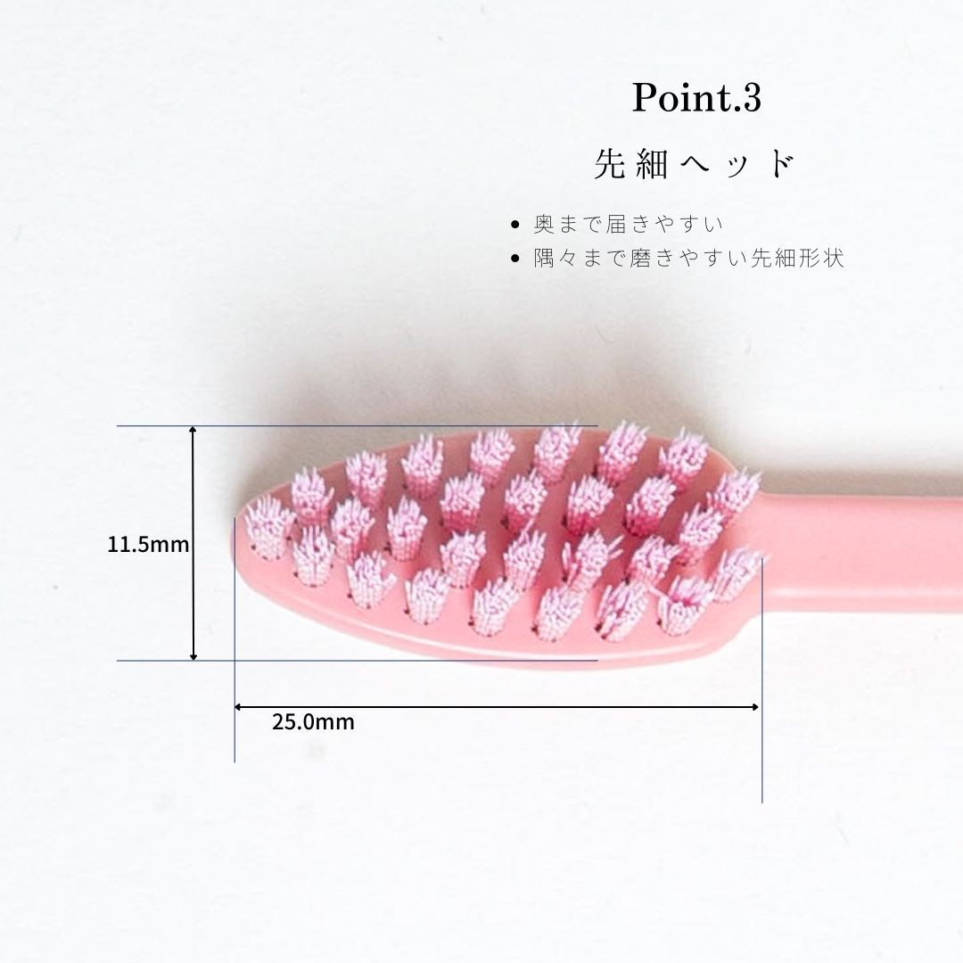 毛先は性能のよいスパイラル毛を採用し奥まで汚れをかき出します。