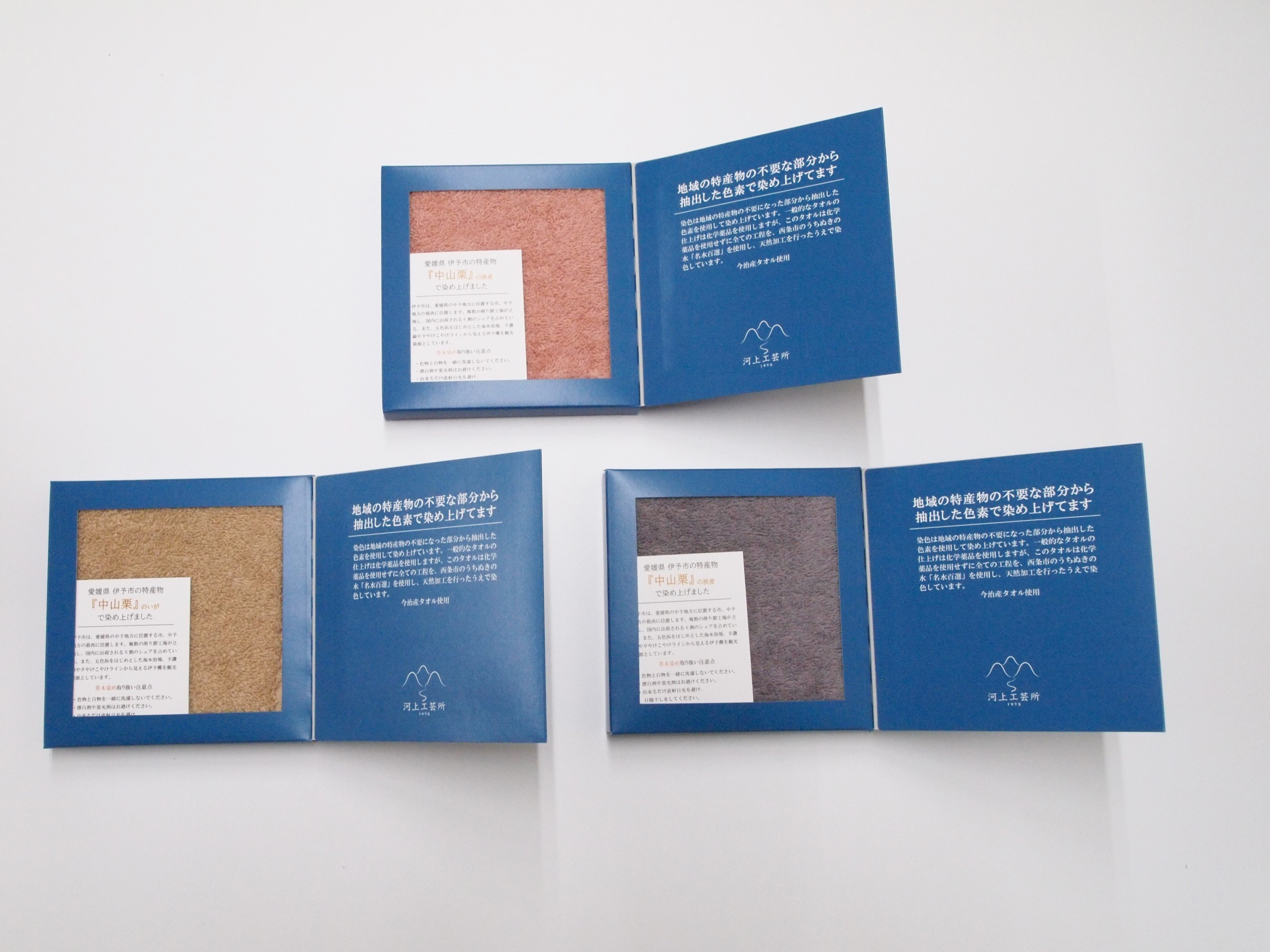 地域の自然を染めるタオルは特産物の不要になった部分から抽出した色素を使用して染め上げています。