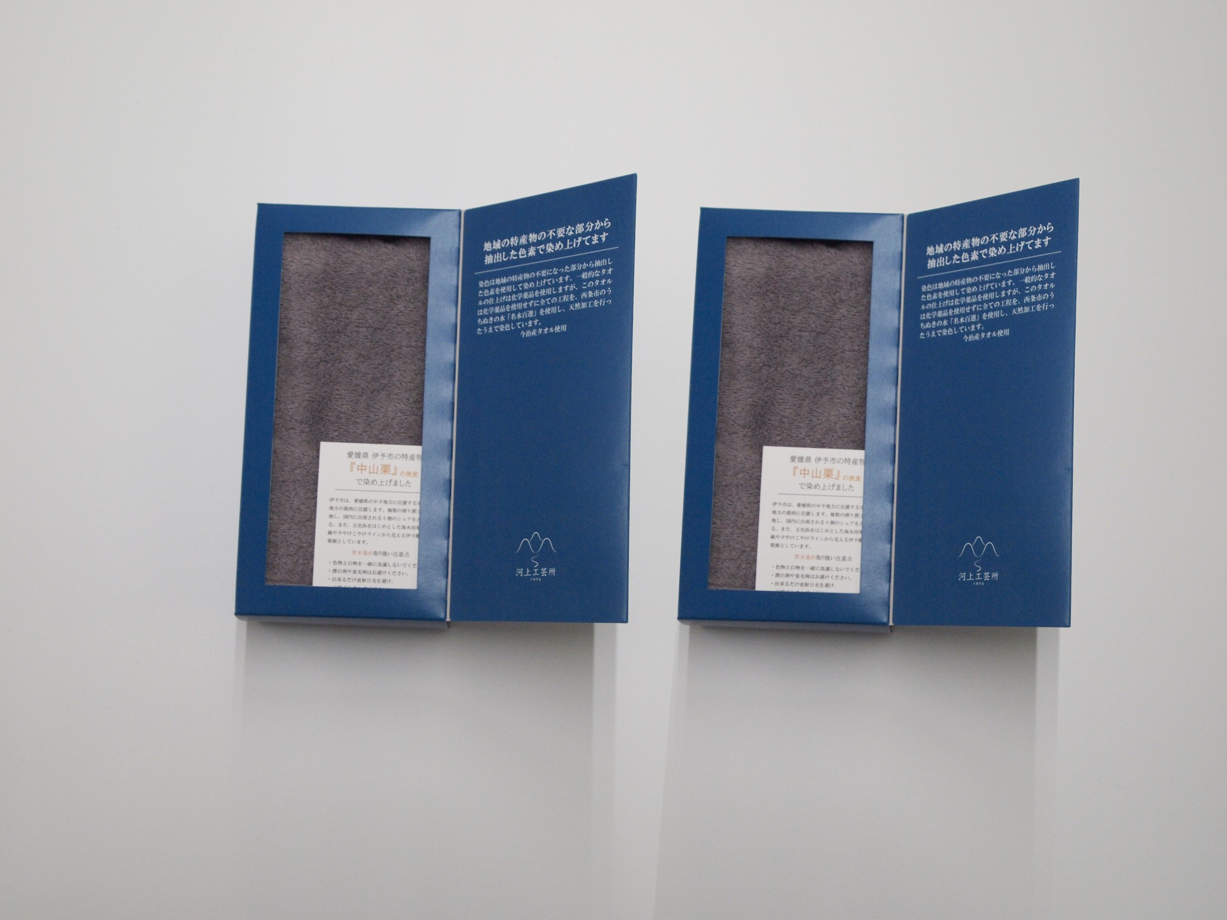 こちらのタオルは、伊予市の特産品「中山栗」の渋皮で染め上げました。