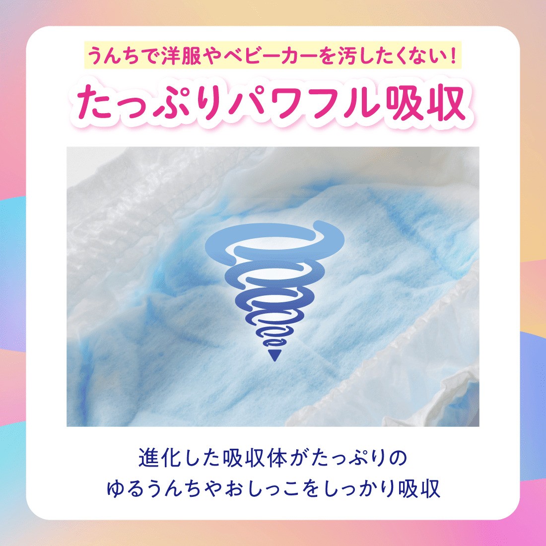 進化した吸収体がたっぷりのゆるうんちやおしっこをしっかり吸収