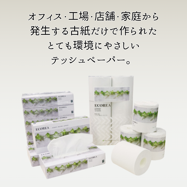 古紙を100%の環境にやさしいティッシュペーパー ECOREA ティッシュ