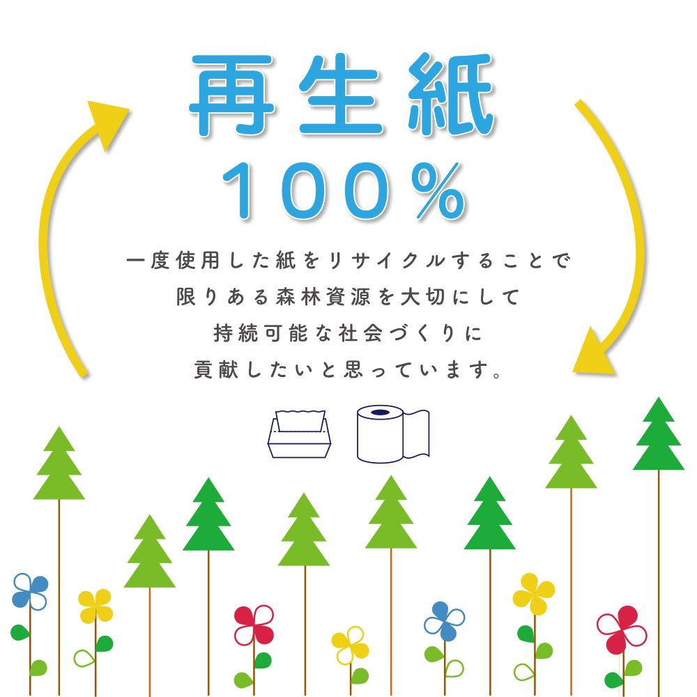 再生紙100%のトイレットペーパーで、限りある資源を有効利用した商品です。