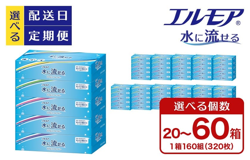 災害・レジャーにも最適!水に流せるティシュー 【指定日配送】エルモア 水に流せるティシュー 20箱 / 30箱 / 60箱 5個× 4パック 6パック 12パック 定期便 ティッシュ ティッシュペーパー ボックスティッシュ 日用品 消耗品 備蓄 防災 愛媛県 四国中央市
