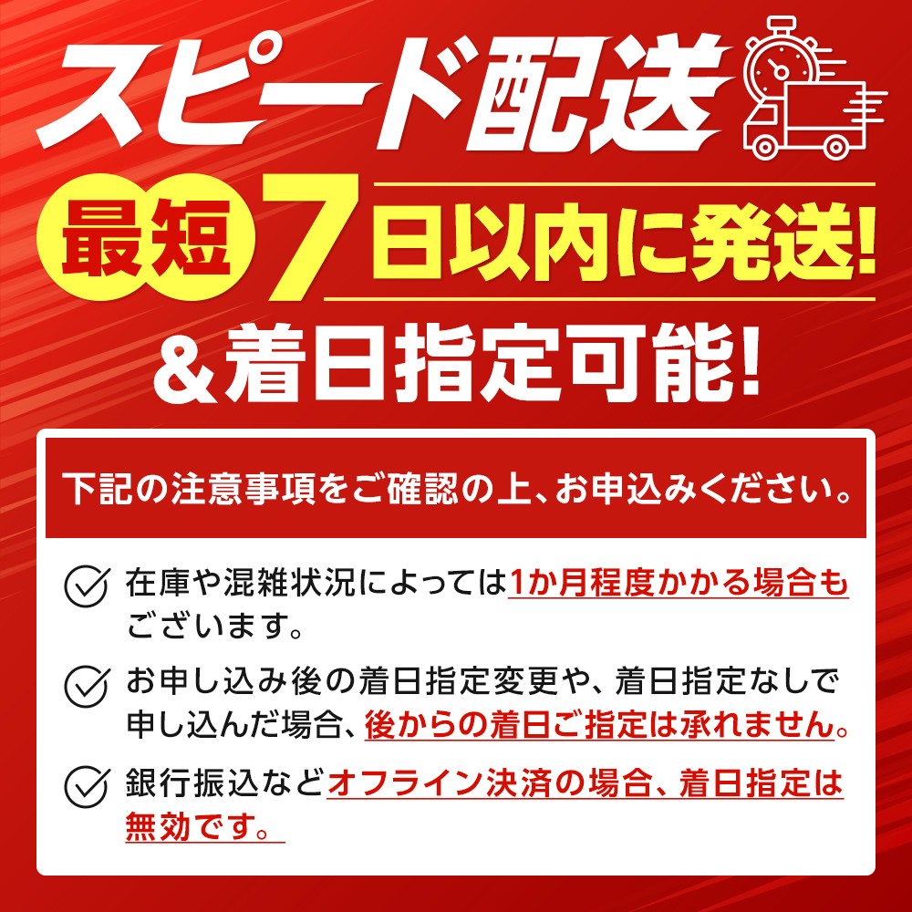 スピード発送 決済から7日程度で発送 |