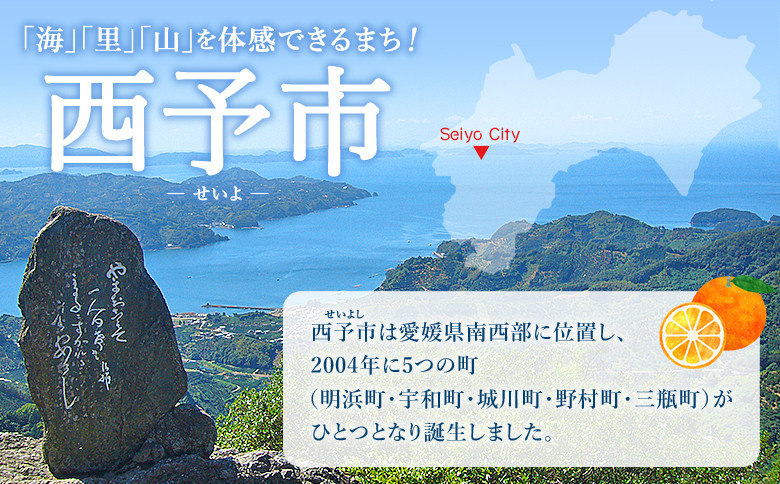 西予市は愛媛県の南部に位置し、平成16年4月に5つの町がひとつとなり、愛媛の地に産声を上げました。海抜0mの臨海部から1,400mの山間部まで変化に富んだ地形を有し、平成25年に市内全域が「四国西予ジオパーク」として日本ジオパークに認定され、美しく豊かな自然環境・景観、その地で息づいてきた歴史と伝統文化を誇るまちです。