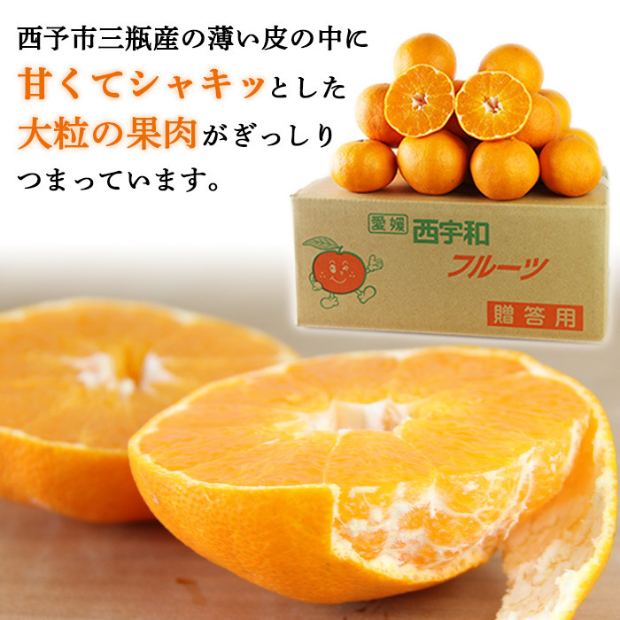 愛媛県西予市三瓶産の段々畑で育った薄い皮の中に甘くてシャッキとした大粒の果肉がギッシリつまっています。