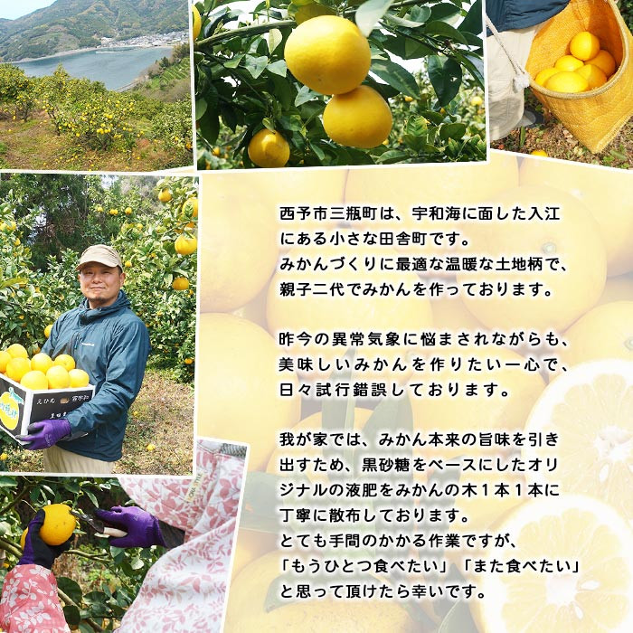 昨今の異常気象に悩まされながらも、美味しいみかんを作りたい一心で、日々試行錯誤しております。