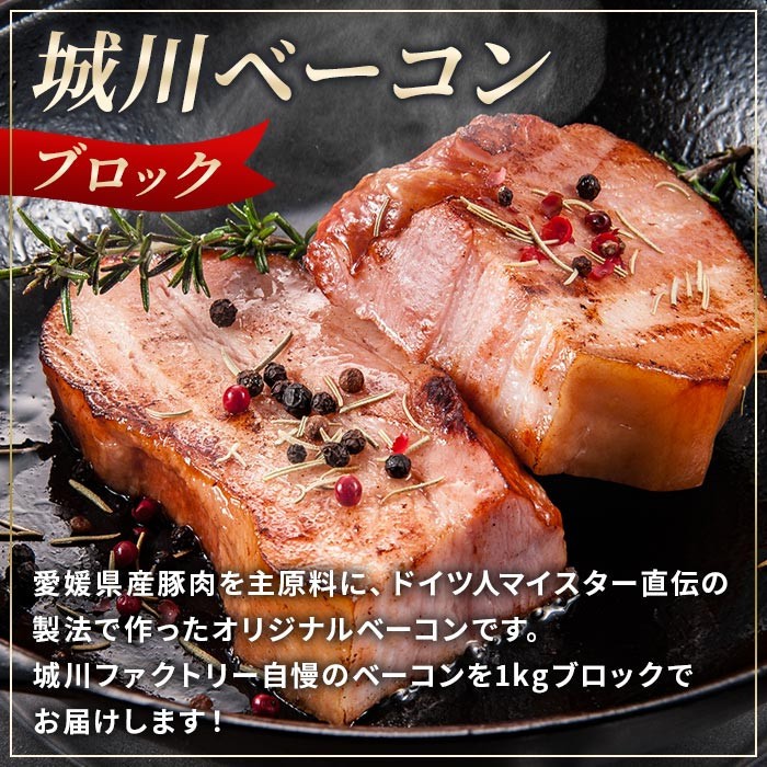 愛媛県産豚肉を主原料にし、ドイツ人マイスター直伝の製法で作ったたっぷりサイズのオリジナルベーコン。
