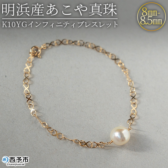 <明浜産あこや真珠8-8.5mm K10YGインフィニティブレスレット> パール ジュエリー アクセサリー フォーマル カジュアル ギフト 西予市 贈り物 祝 冠婚葬祭