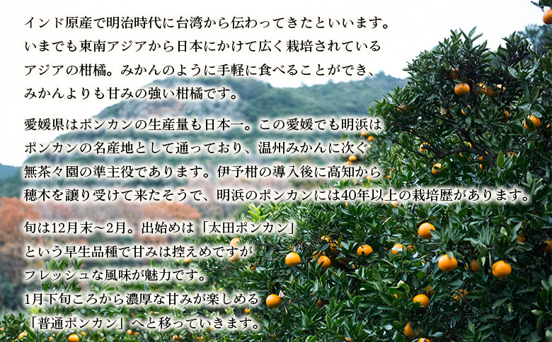 伊予柑の導入後に高知から穂木を譲り受けて来たそうで、明浜のポンカンには40年以上の栽培歴があります。