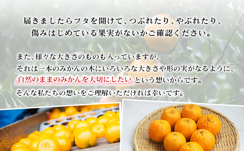 また様々な大きさのものも入っていますが、それは一本のみかんの木にいろいろな大きさや形の実がなるように、自然のままのみかんを大切にしたいという想いからです。