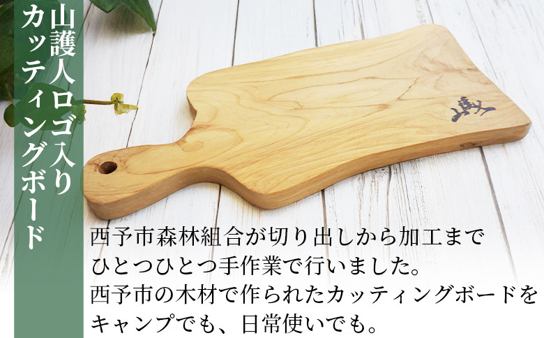 西予市森林組合が切り出しから加工まで手作業で行ったロゴ入りカッティングボード <山護人YAMAMORIBITO 木製カッティングボード> まな板 まないた 板 ロゴ入り 手作り調理器具 台所用品 キッチン用品 キッチン 日常使い アウトドア キャンプ 西予市森林組合 愛媛県 西予市【常温】