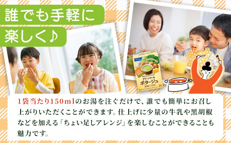 栄養価が高く「野菜の王様」と呼ばれるケールを贅沢に使った濃厚なポタージュです。 <グリーンケールポタージュ(20g×7袋入り)×2箱 1回・3回・6回定期便> 野菜 個包装 計14袋 計280g 粉末 野菜の王様 健康 栄養 ケール 手軽 アレンジ おかず スープ ファンケル FANCL グリーンヒル 愛媛県 西予市【常温】