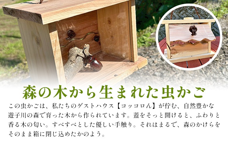 懐かしく、温かい記憶が蘇るような、シンプルで飽きのこないデザインに仕上げました。 <遊子川の森から生まれた、木の温もり溢れる木製虫かご> 虫かご 虫籠 木製 1個 オリジナル 特別 虫取り 虫とり 刻印 記念 思い出 昆虫採集 昆虫 虫 子ども 遊子川ゲストハウス コッコロん 愛媛県 西予市【常温】『ご連絡調整後、製作し発送いたします』