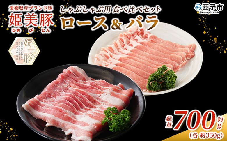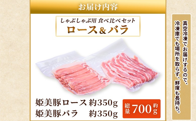 脂は軽やかで甘く、赤身はしっとり旨み豊か。 <愛媛県産 姫美豚 しゃぶしゃぶ用 ロース&バラセット 約700g(350g×2P)> ひめびとん 豚肉 ブランド豚 ロース バラ 国産 セット しゃぶしゃぶ 肉セット 食べ比べ おうち鍋 真空冷凍 特産品 木村屋精肉店 西予市【冷凍】『2月以降に順次出荷予定』