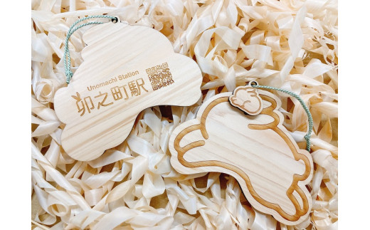 ~全国で唯一『卯』がつく駅、卯之町駅のオリジナル絵馬~ うさぎのミニ絵馬チャームがセットになったうさぎ絵馬です。 絵馬としてはもちろん、玄関飾りやルームプレートなど、様々な用途でお使いいただけます。