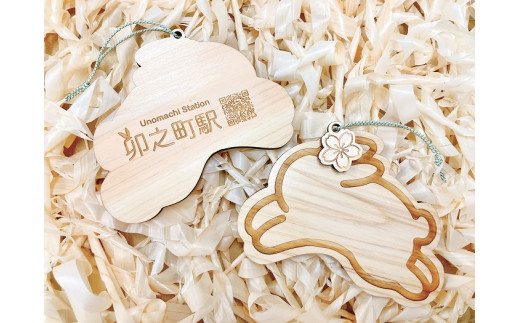 ~全国で唯一『卯』がつく駅、卯之町駅のオリジナル絵馬~ さくらのミニ絵馬チャームがセットになったうさぎ絵馬です。 絵馬としてはもちろん、玄関飾りやルームプレートなど、様々な用途でお使いいただけます。