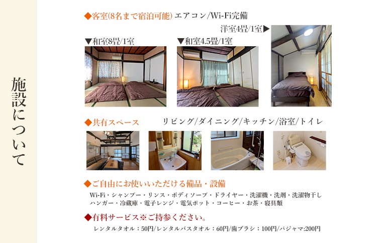 entohouseBAR&GUESTHOUSEの母屋一棟貸しプランで3名様までご一泊いただけるチケットです。 entohouseBAR&GUESTHOUSEは西予市野村町に位置するゲストハウス。 ≪ento-遠図-≫とは遠くの未来を考えること。 目先の利益にとらわれず、ずっと先まで、この文化を、まちを、地球を残していきたいという想いで生まれた、野村町の≪entrance-入り口-≫のような場所です。 「シルクとミルクのまち」「飲む村のむら」と呼ばれるこのまちの温かい魅力を体感する旅に出かけませんか。