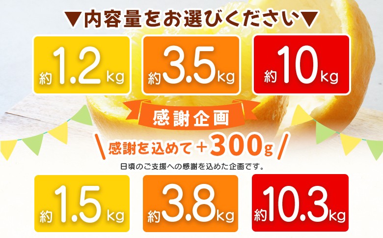 | 容量 | 河内晩柑家庭用 ※内容量をお選びください※ ・約1.2kg《寄附金額:5,000円》 ・約3.5kg《寄附金額:10,000円》 ・約10kg《寄附金額:17,000円》 ~期間限定~ ・約1.5kg【感謝企画】《寄附金額:5,000円》 ・約3.8kg【感謝企画】《寄附金額:10,000円》 ・約10.3kg【感謝企画】《寄附金額:17,000円》 |