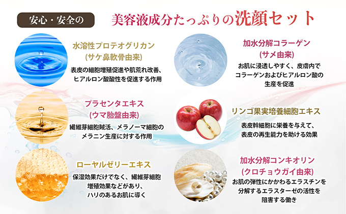 フリー成分 / 合成香料、アルコール、パラベン、鉱物油、着色料(洗顔料の色は流紋岩末由来の自然の色です。)