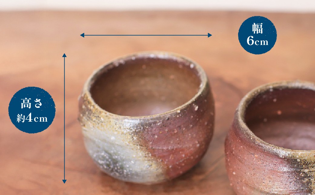 | 容量 | 備前焼 ぐい呑み 2個 サイズ:約4cm(高さ)×6cm(幅) 50ml 60g 製造地:愛媛県上島町 ■原材料・成分 陶土 |