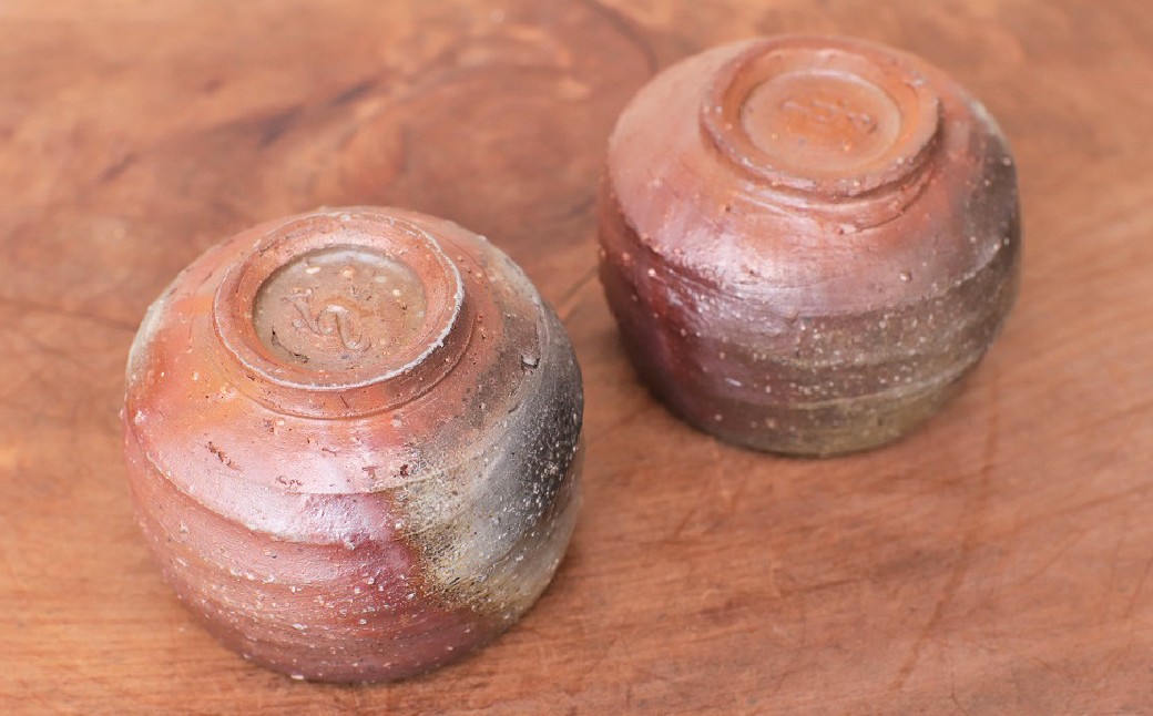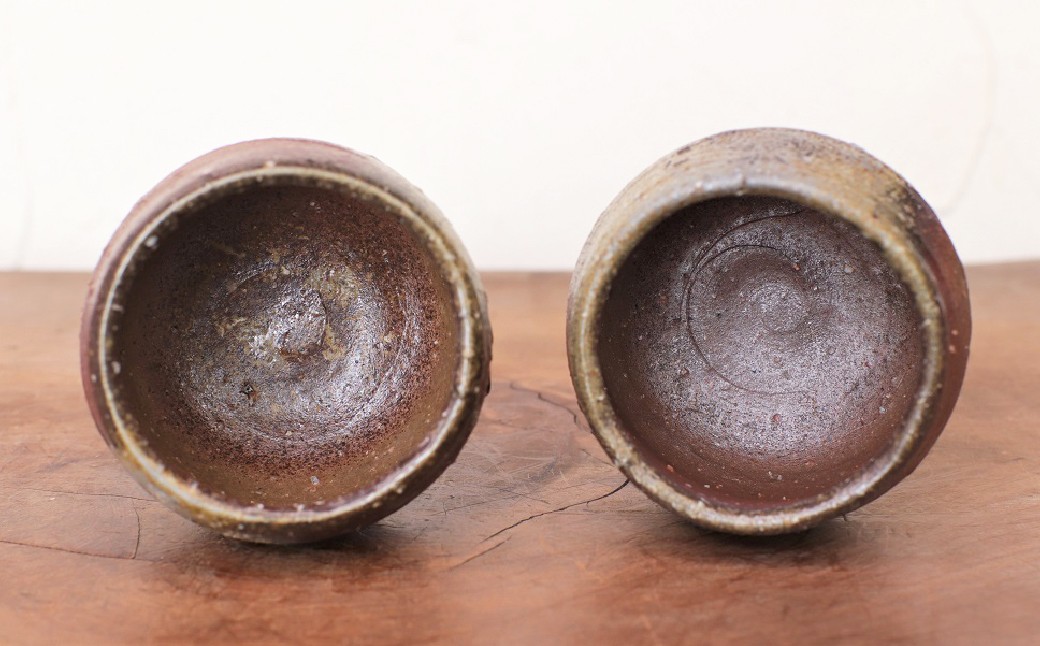 薪窯による力強い焼けが特徴。 備前焼 ぐい呑み2個セット st-007