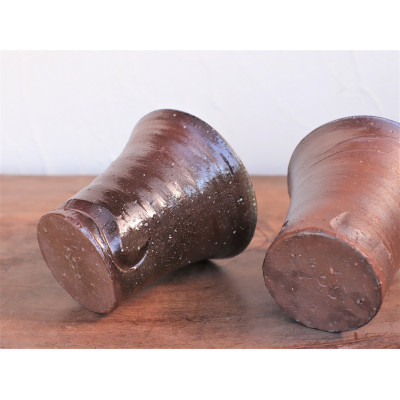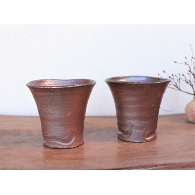 薪窯による力強い焼けが特徴。 備前焼 焼酎呑(中) 2個セット s2-035