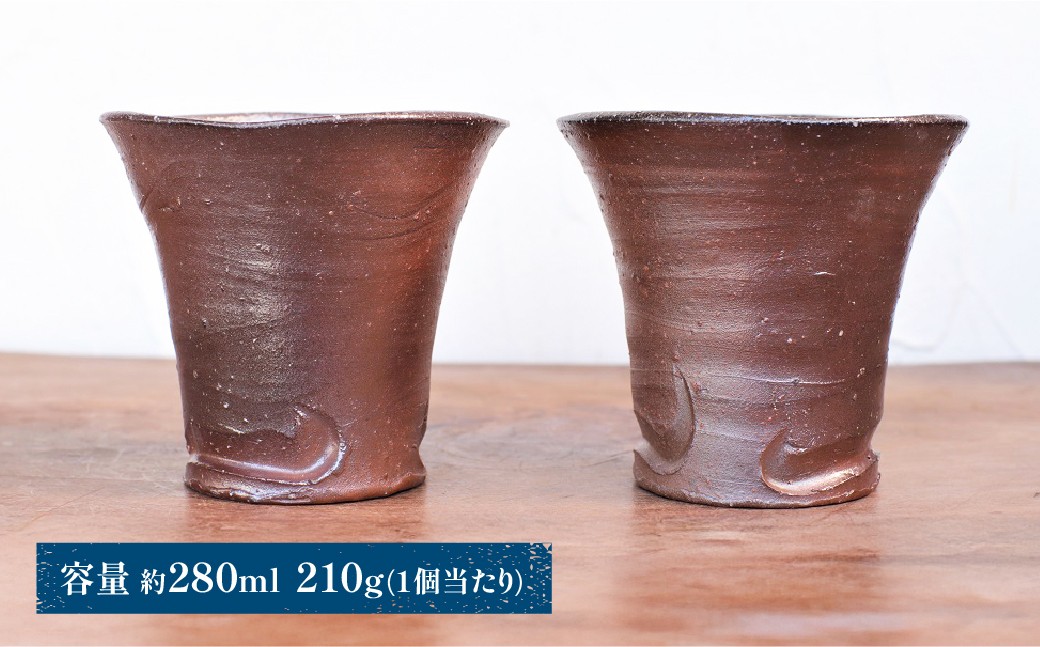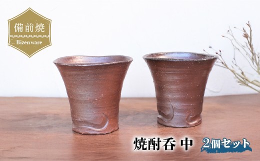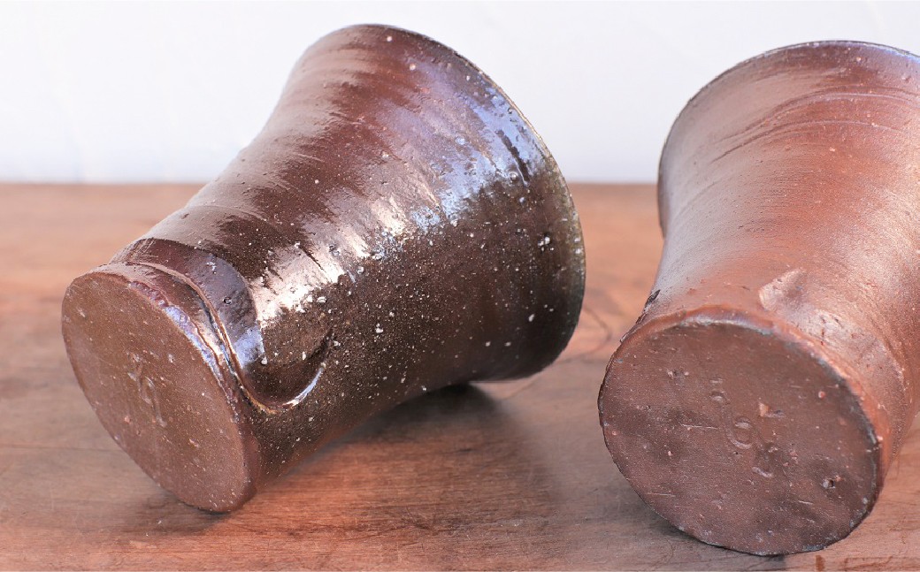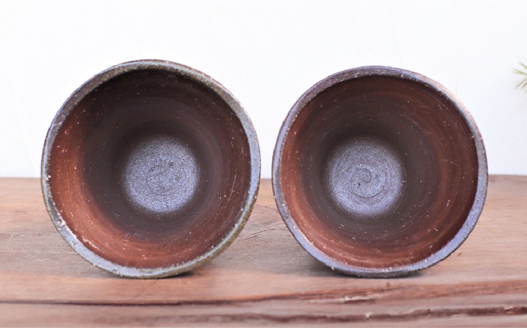 薪窯による力強い焼けが特徴。 備前焼 焼酎呑(中) 2個セット s2-035