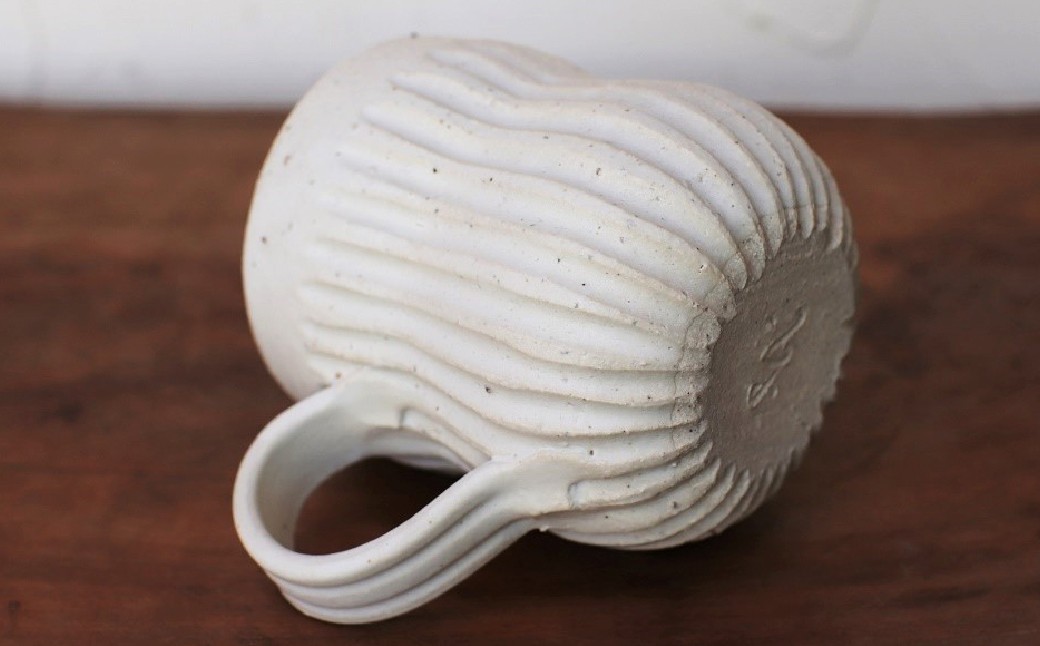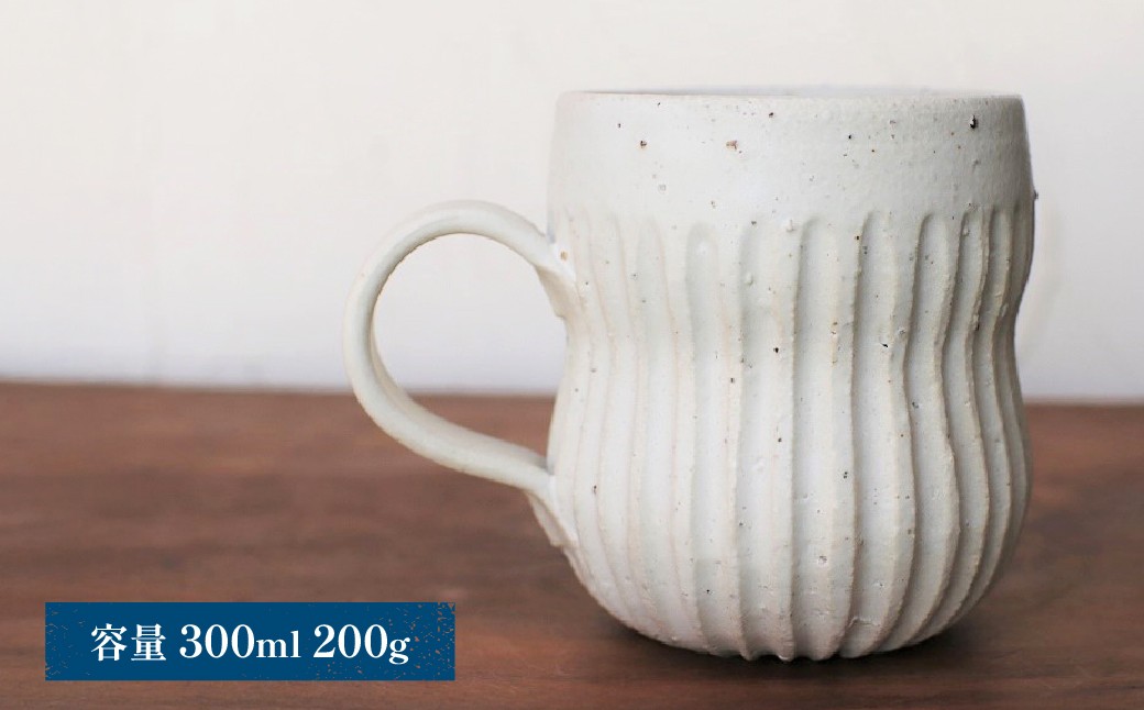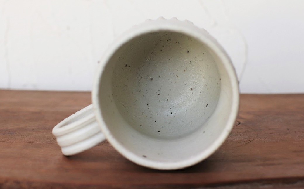 独自の調合により小石混じりの粗い土を使用し、ふっくらとした形が愛嬌のある鎬(しのぎ)のコーヒーカップ。