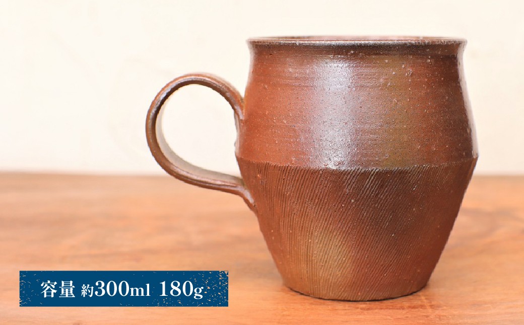 土を焼いただけのシンプルなコーヒーカップ。カップ中央より下部分は大地に群生する野草を勢いのある線紋で表現しています。