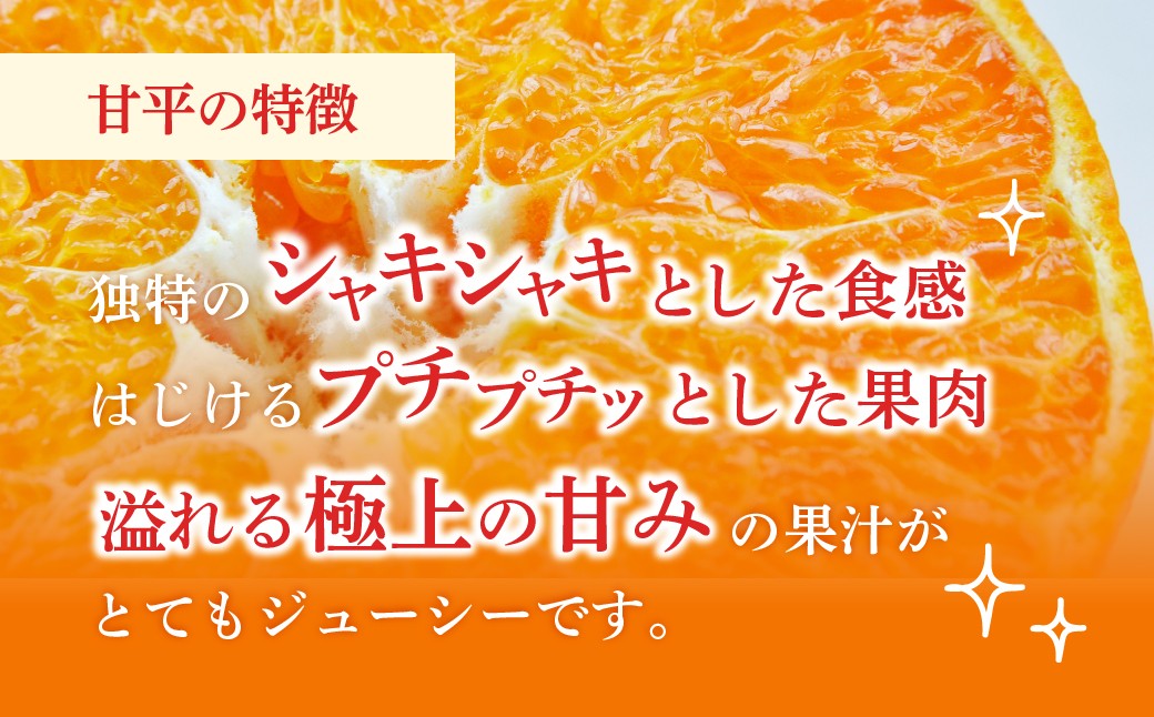 甘平の一番の特徴は、独特のシャキシャキ、プチプチした果肉から極上の甘みの果汁が溢れるジューシーさです。