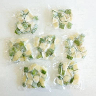 旬の時期に収穫したもぎたてのグリーンレモンを素早くコロコロにカットし、使いやすさを重視し150gずつ真空パックし冷凍にしました。冷凍にすることでグリーンレモンのフレッシュさを閉じ込め、いつでも果実本来の風味と味覚が楽しめます。