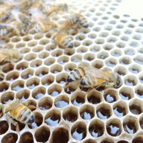 みつばちはいろいろな花から集めてきた花蜜に自身が作り出す酵素を加え、羽を羽ばたかせて水分を飛ばし、糖度80%前後になるまで濃縮します。
