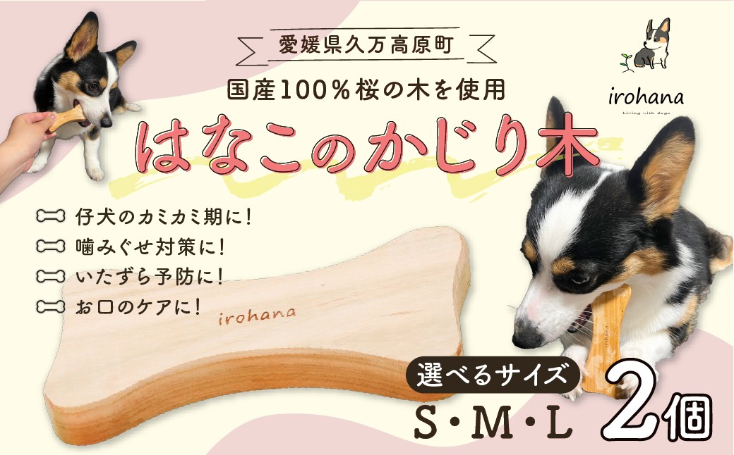 桜の木100%使用した安心の自然素材。噛んでケア、デンタル&いたずら防止に 犬用 かじり木 【2個】 選べる S・M・Lサイズ はなこのかじり木 | 国産天然木 無塗装 小型犬 中型犬 大型犬対応デンタルケア 甘噛み対策 久万高原町産