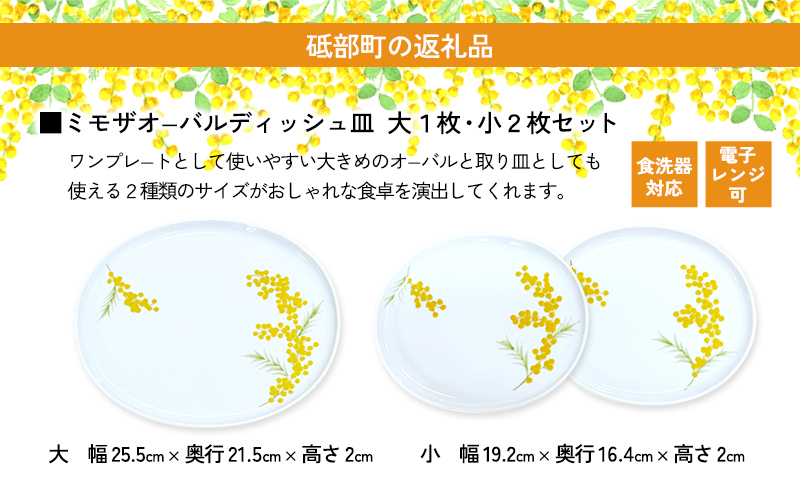 砥部焼ミモザオーバルディッシュ皿大1枚・小2枚セット:区域内の会社で全工程を行い製造・加工された皿であるため。(告示第5条第3号に該当)