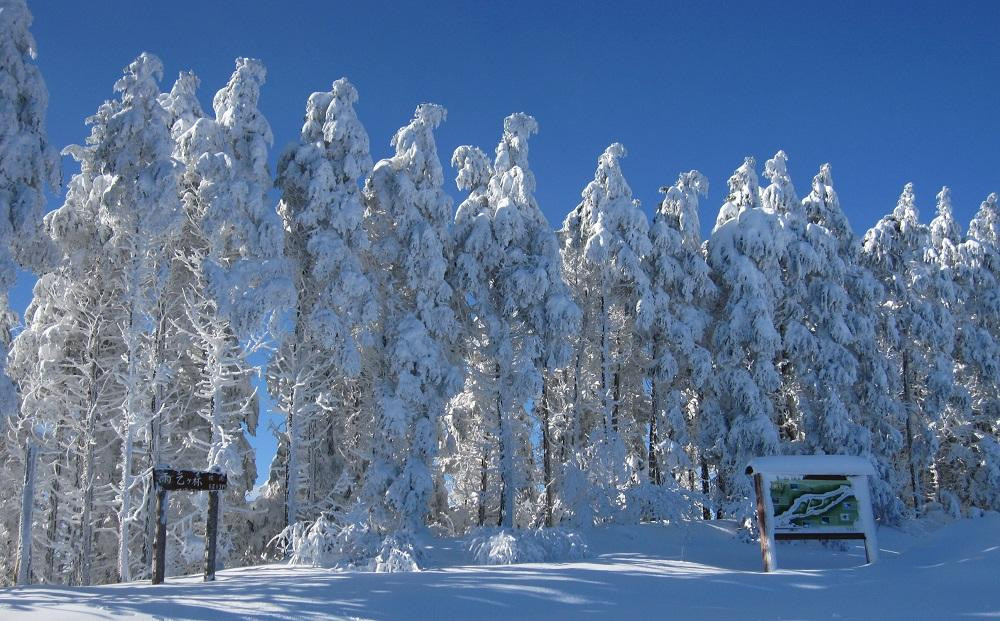 全長400mの広く緩やかなコース。初めての方でも楽しく安心して滑れ、また、家族連れやグループのスキー数室にも最適です。樹氷花咲くゲレンデをのんびり滑るのも Good!