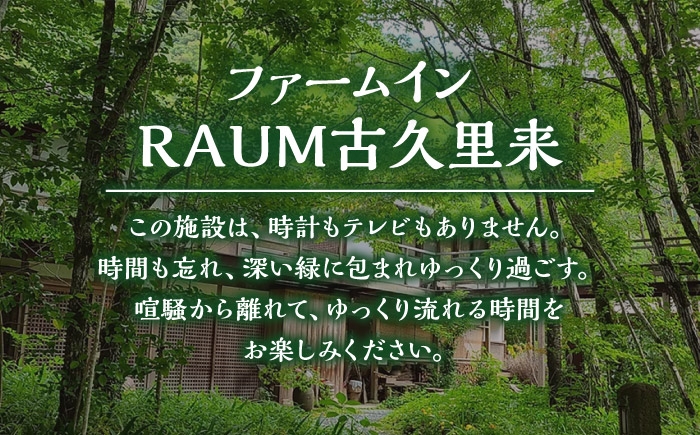 チョイス公式ポイント交換対象 日常を忘れる、質の高い旅。小さな森に囲まれた宿で心も身体もリフレッシュ。 <ファーム・インRAUM古久里来>1泊2食 ペア宿泊券/宿泊 チケット 人気 おすすめ 内子町【うちこグリーンツーリズム協会】 [BKAK002]