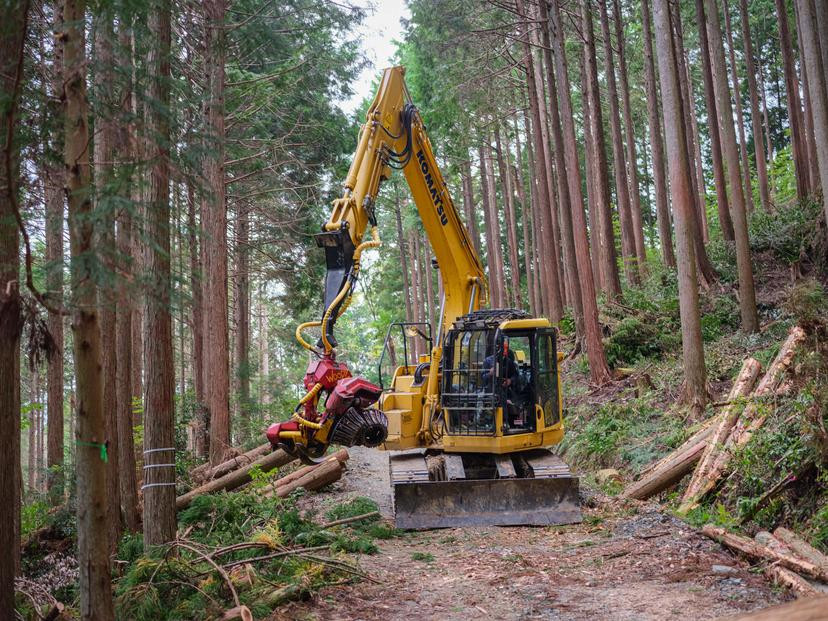 林業作業の工程では、枝葉類は未利用材とされ、山に放置されています。