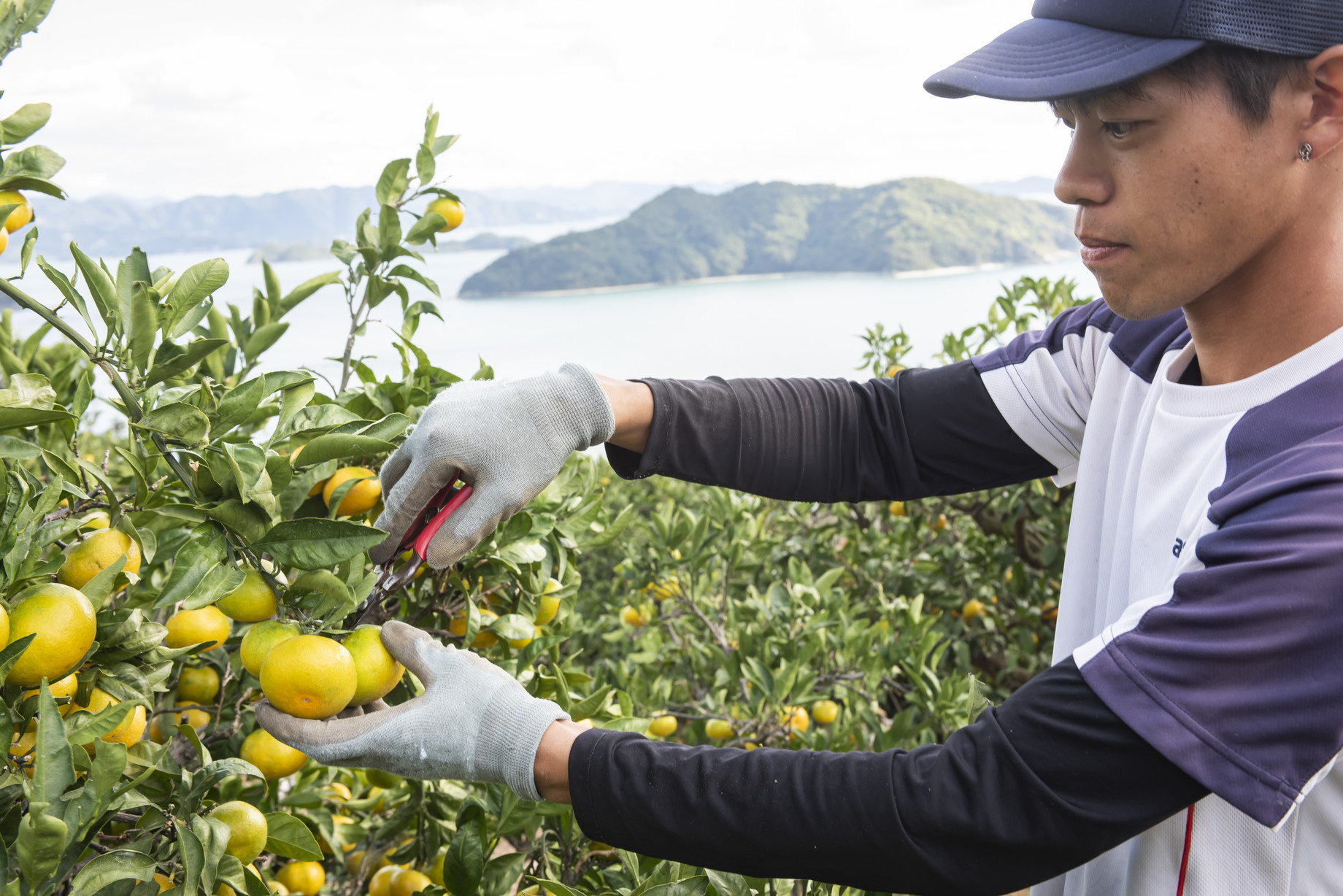 南の宇和海側はなだらかな白砂の連なる海岸、北の瀬戸内海側はリアス式海岸を形成しており、年間平均気温16℃の温暖な海洋性気候に恵まれた伊方町では、段々畑で温州みかん、清見タンゴール、デコポンなどの果樹栽培が盛んです。