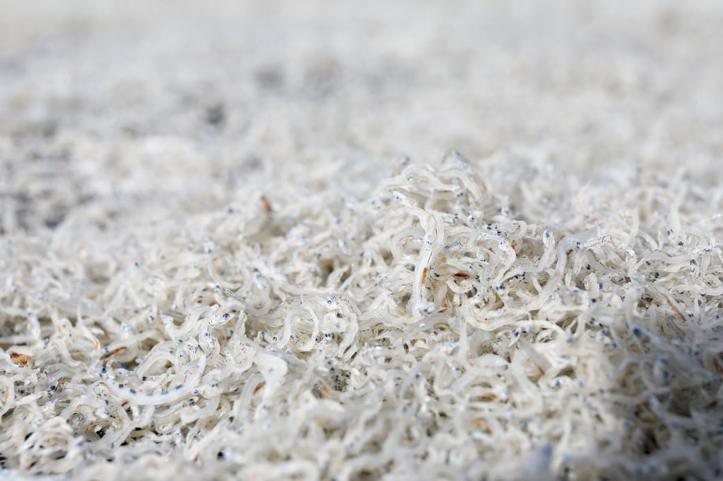 ※「ちりめんつくだに」のイワシ稚魚はイワシ以外の海産物(エビ、カニ含む)が混ざる漁法で採取しています。